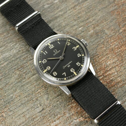 RAF watches from this period were supplied by several prestigious watch manufacturers, including Omega, Jaeger-LeCoultre and Longines. All these watches followed a standard specification, which included a white dial with black Arabic numerals, centre seconds and blued steel non-luminous hands.