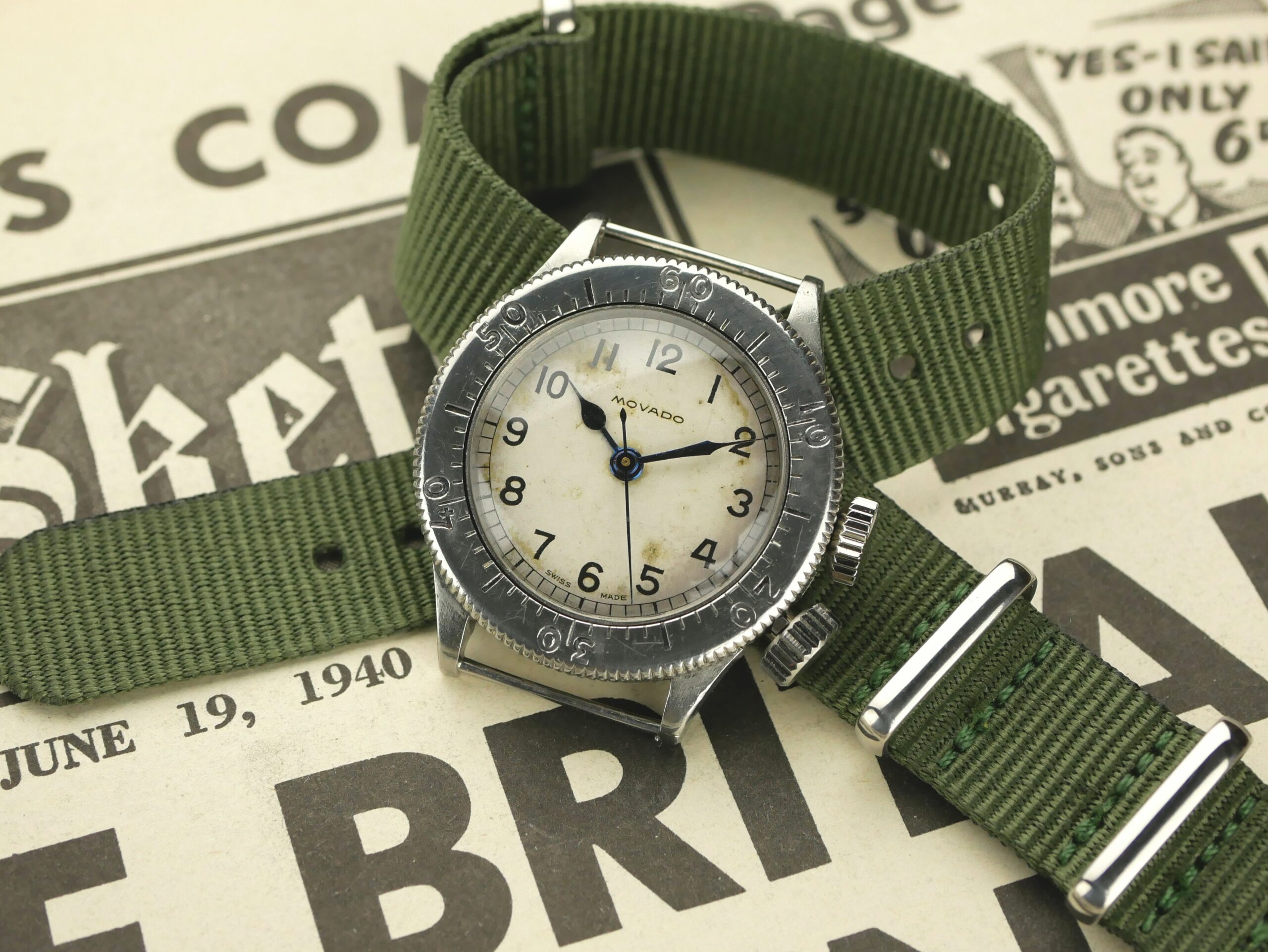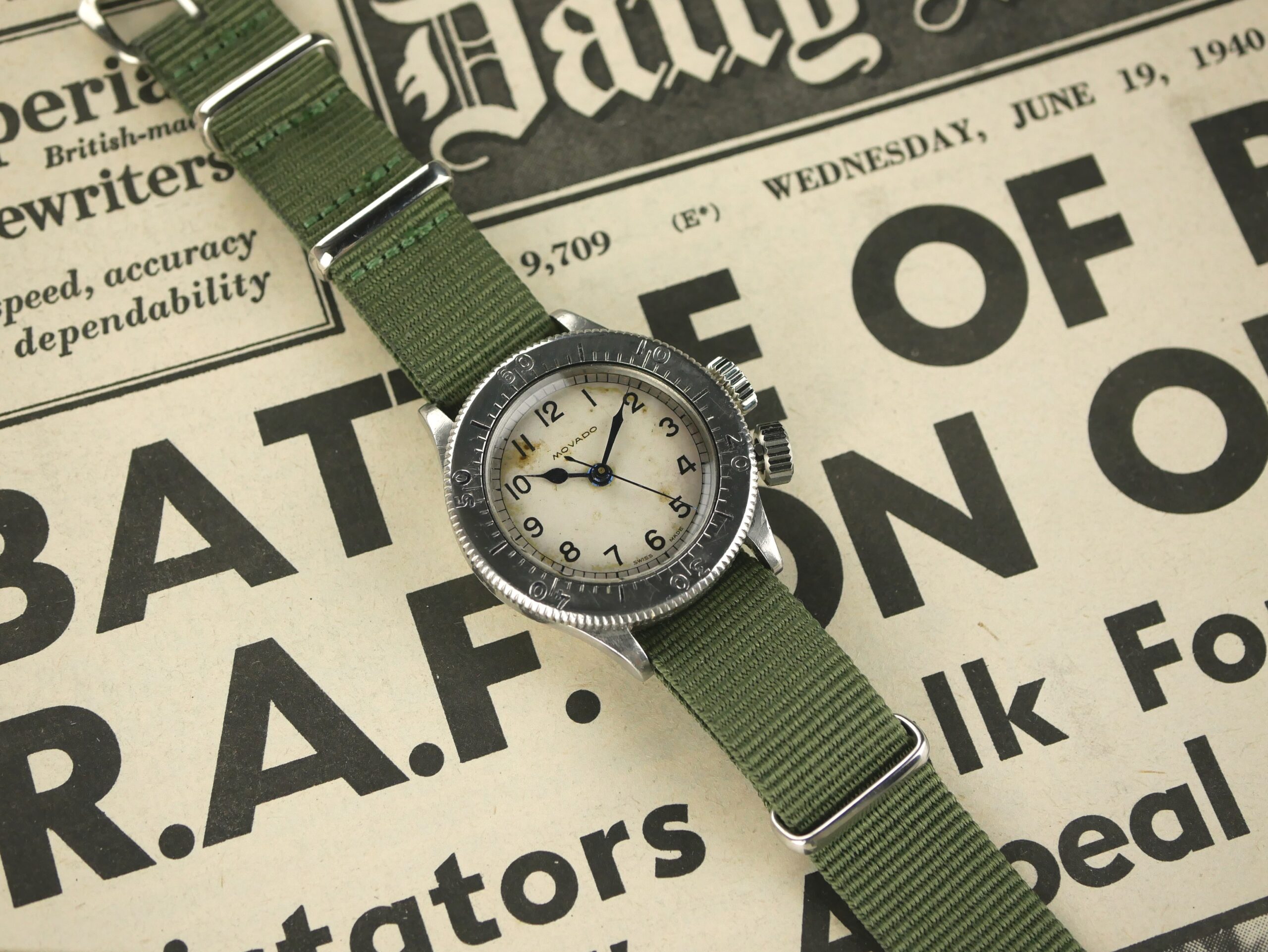 Movado examples of these watches are very scarce and are seldom offered for sale. As such, the watch for sale represents a fantastic opportunity to acquire a superb piece of British WW2 aviation history.